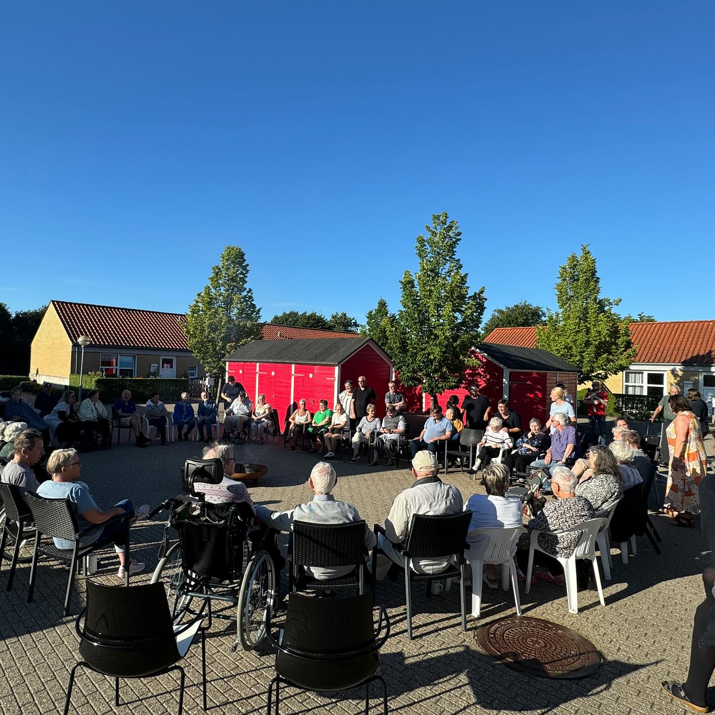 Sankt Hans fejret i Landsbyen Møllevang i dejligt solskin. Festen havde stor opbakning fra både beboere, pårørende og personalet. Der blev sunget midsommervisen med Shu-bi-dua i højtalerne, og derefter hyggede deltagerne sig med snobrød, saft og kaffe.
